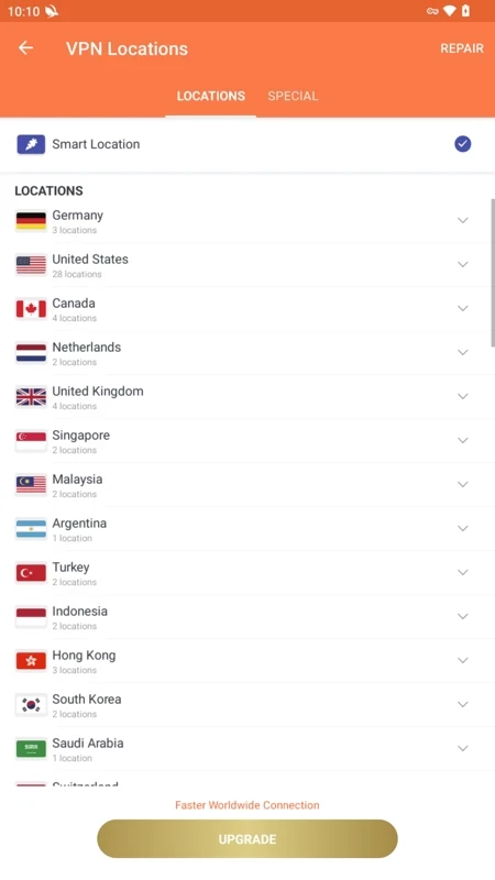 La aplicación ofrece conectividad fluida con la ubicación que desees, además de 2100 servidores en 111 ubicaciones disponibles en más de 50 países, incluyendo Asia, Europa, América, etc. Disfrutarás de una experiencia de internet optimizada y dedicada. Eliminará todas las barreras y te abrirá las puertas a un nuevo mundo de entretenimiento, educación y otras actividades similares.